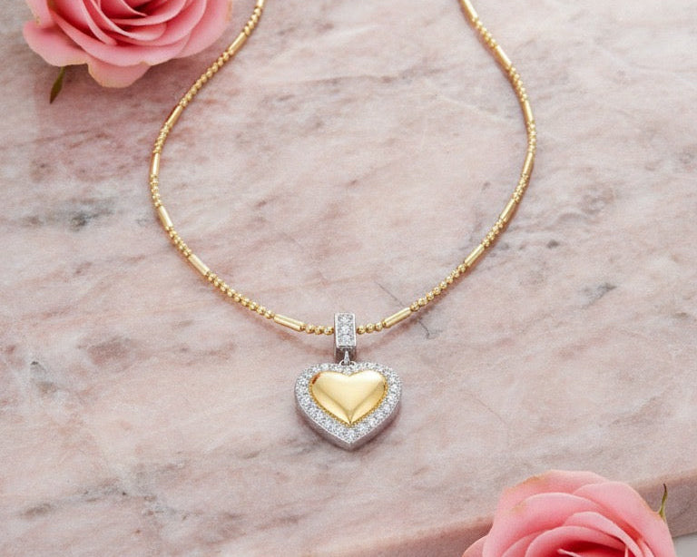 A romantic heart-shaped necklace crafted with 21K gold plating, designed to add a touch of elegance and timeless beauty to your everyday look.