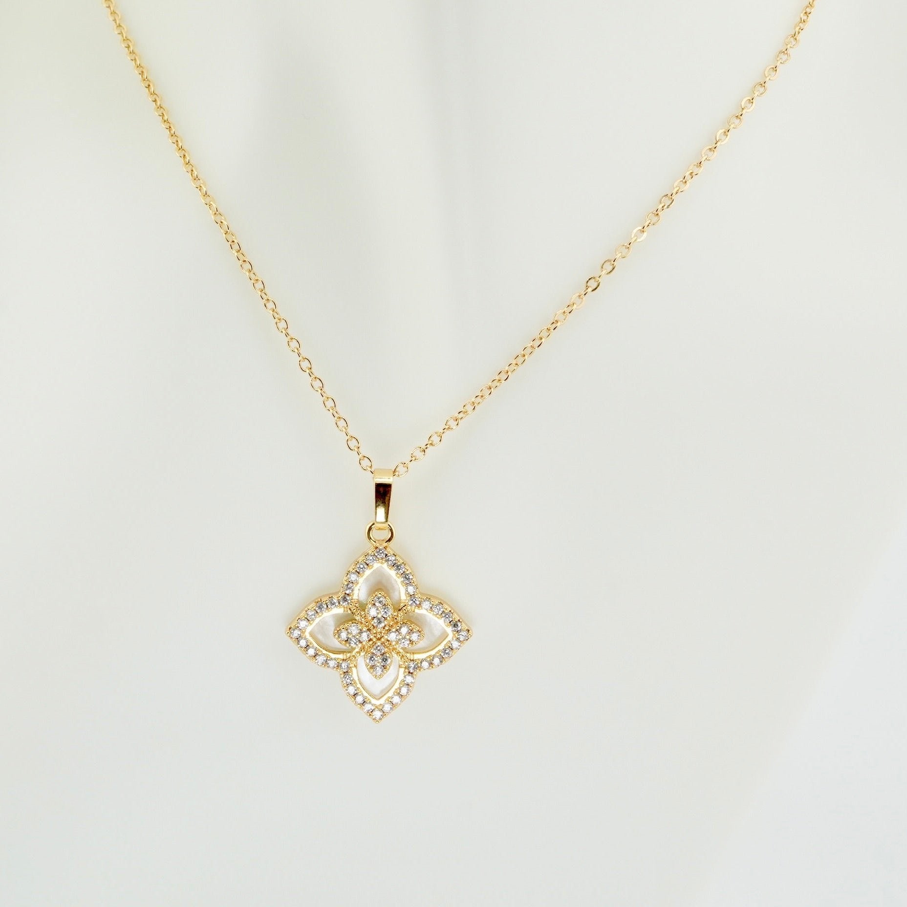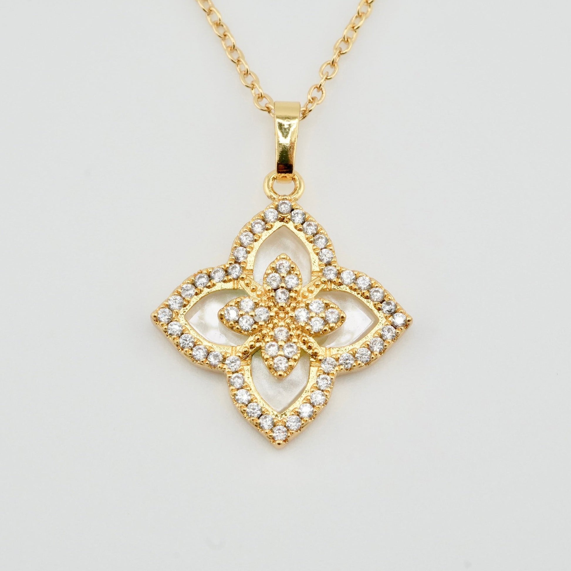 The Radiant Bloom Pendant Necklace captures the essence of elegance with its floral-inspired design. This intricate piece features a delicate bloom-shaped pendant, encrusted with shimmering crystals for a touch of sparkle. The fine gold-plated chain adds a luxurious feel, making it perfect for both everyday wear and special occasions. Its timeless design ensures that it complements any outfit, offering a sophisticated accent to your style. The lightweight and comfortable fit make this necklace an essential addition to your jewelry collection.