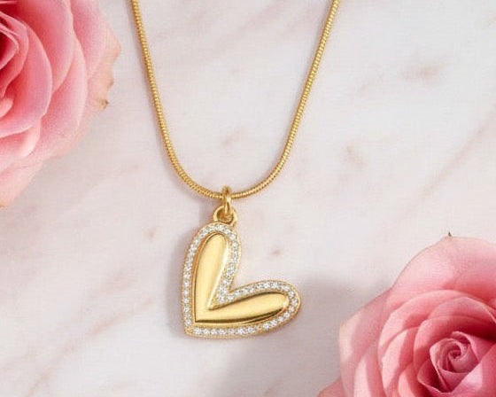 Crafted with premium 21K gold plating, this delicate heart pendant is accented with shimmering stones that add a subtle sparkle. Its refined design makes it perfect for everyday wear or special occasions.